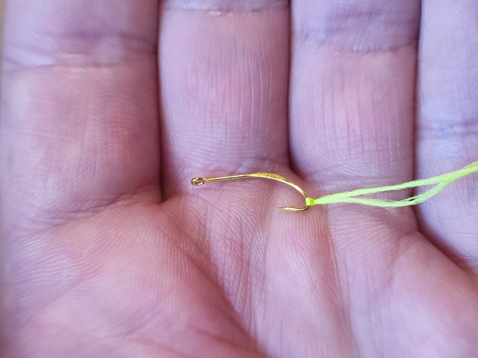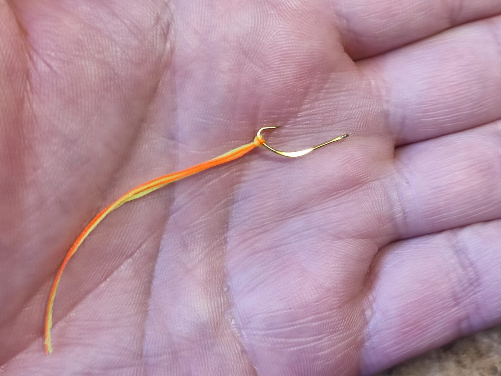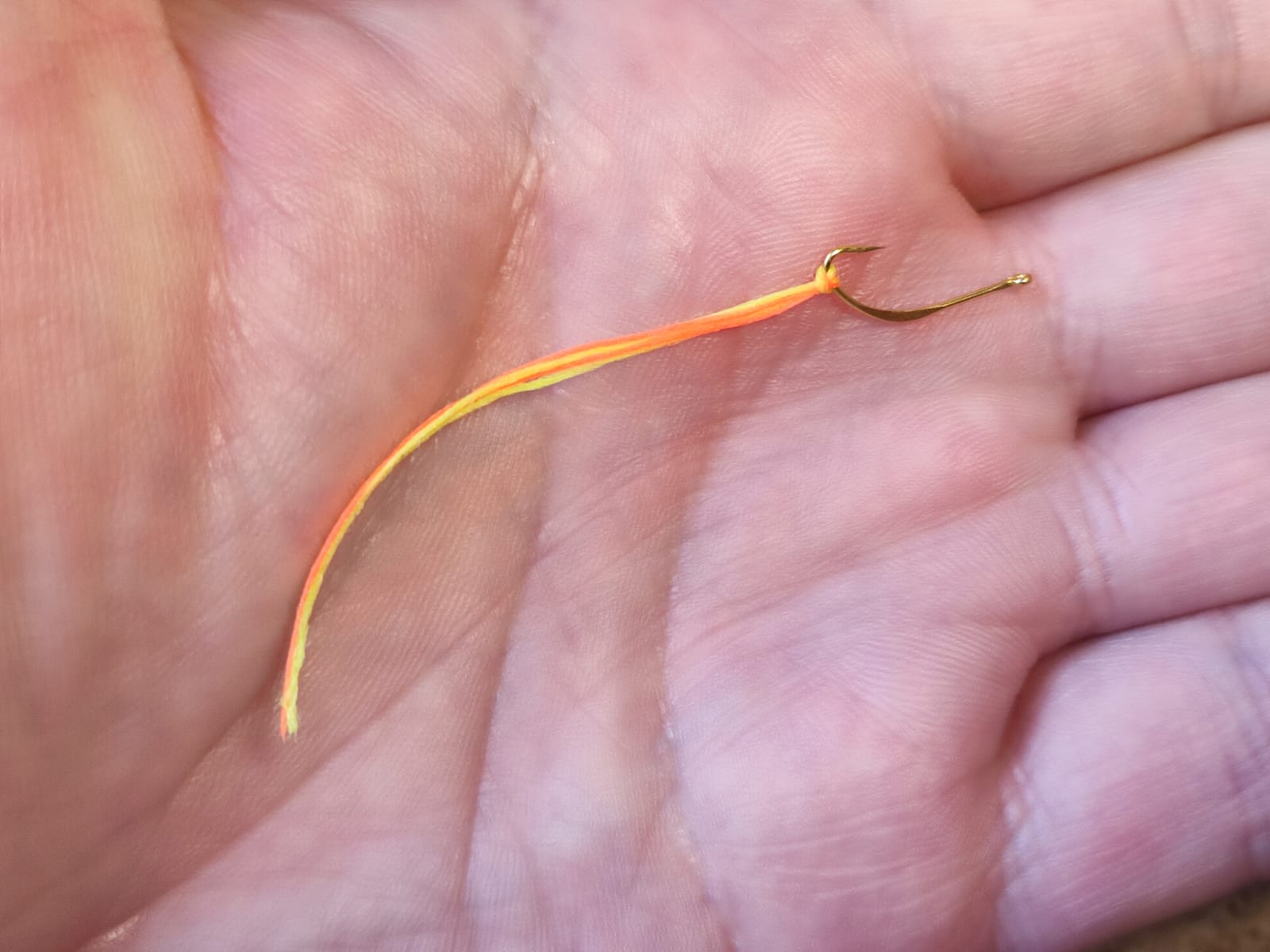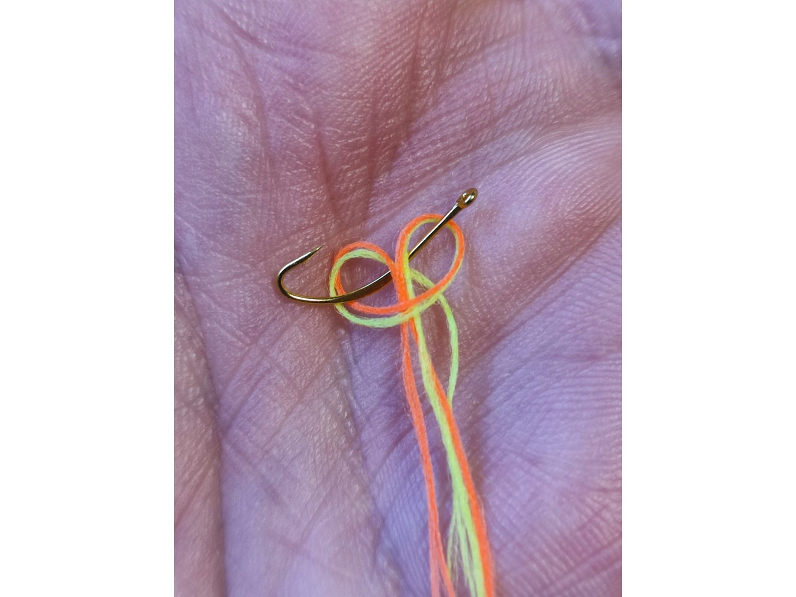 крючек-блесна #8 позолоченый + 3 цвета шелковой нити по 1,5м ( шартрез Glow ,розовый Glow, оранж UV)